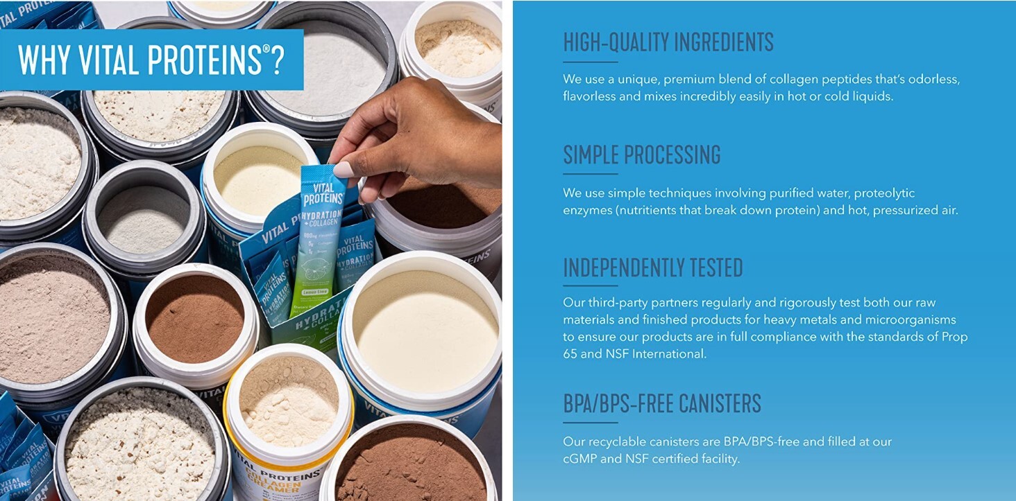 Moreover, Vital Proteins is a company dedicated to promoting holistic wellness. They prioritize sustainability by sourcing their collagen from grass-fed, pasture-raised cattle, supporting regenerative farming practices. By choosing Vital Proteins, you're not only taking care of yourself but also contributing to a healthier planet.